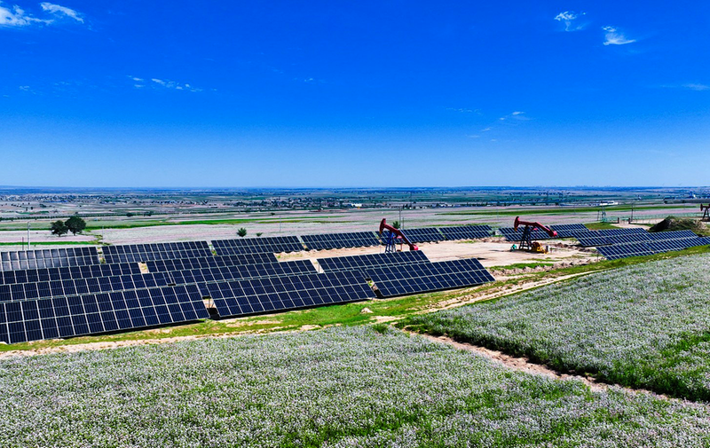据了解,采油五厂充分盘活油区内闲置场站、屋顶等资源,精准布点,大力推进分布式光伏电站建设,并积极探索风能资源的开发利用。今年,沙19-19和塬平57-17两台5兆瓦大型风机先后在姬塬油田建成投运,标志着新能源建设步入快车道。