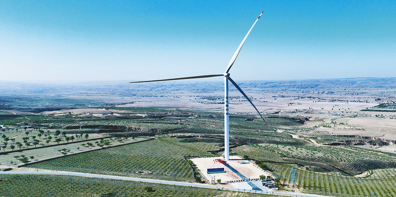 长庆油田首台5兆瓦风机全速运行 徐明凯摄影 本报讯 (通讯员张敏 王雪峰)“2025年电费同比下降超4000万元。带动生产效率提升8%,年节约标准煤3.1万吨、减排二氧化碳8万吨,相当于30万棵树年吸碳量。”采油五厂的一份年度能耗成绩单,在黄土塬上写下生动的“发展算术题”:以电费支出的“减法”,撬动经济、生产、生态“加法”,这座传统油田正以绿色转型为笔,绘就提质增效新图景。