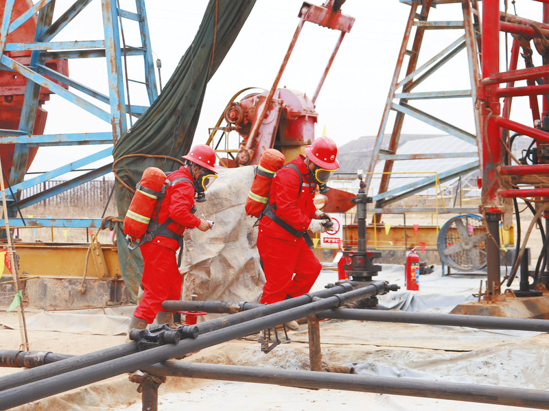 本次演练模拟采油三厂柳97-37井起下大直径工具发生溢流的防喷状况,演习过程中人员分工明确、动作娴熟,发信号、抢装油管旋塞、关防喷器、关套管闸门、安装压力表;抢救人员展开中毒施救、有毒有害气体检测……一套流程科学规范。同时,这个厂组织各承包商队伍及各级监督人员在现场进行观摩学习。此次活动以练促学、以演促改,进一步规范了现场操作流程,切实提升了全员安全防范意识和应急实战能力。